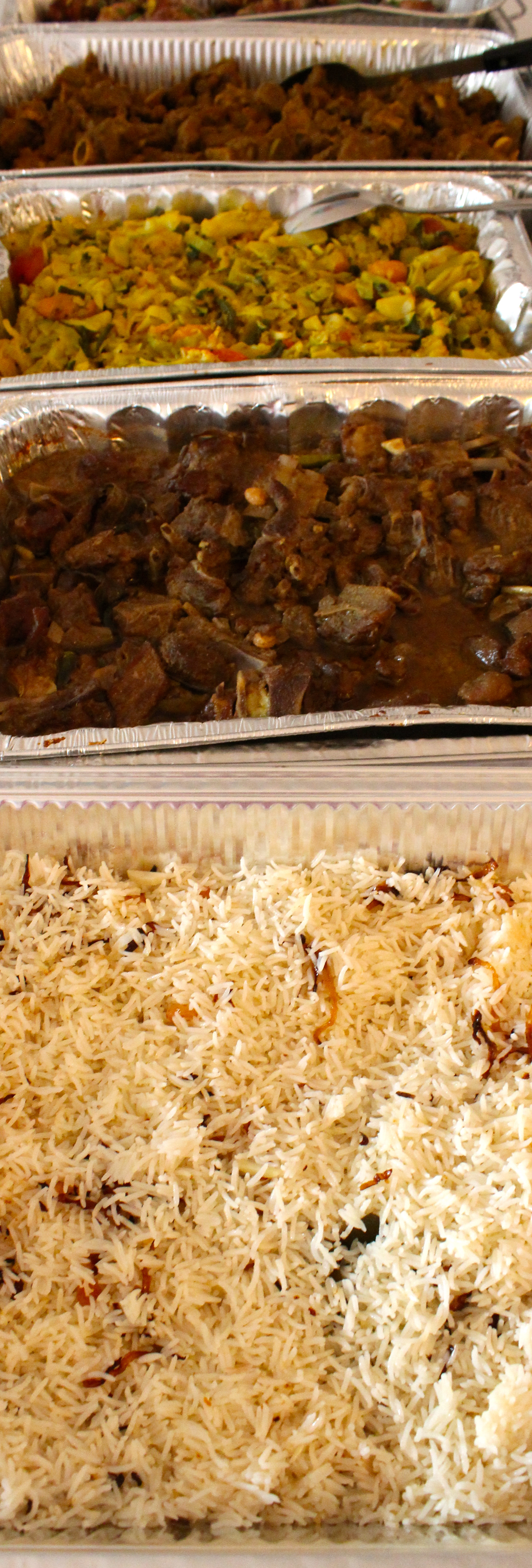On to the main course: salad and balsamic roast chicken got duped in this picture. But, that’s ok. The main attractions were the goat curries, done two ways. One is a spicy, traditional method (thanks to Hasan’s paternal grandmother) the other is a sweeter curry, made with yogurt, raisins and almonds (thanks to his maternal grandma). Then there was the mixed vegetable saut�. And the rice pilaf (palau). Don’t forget the naan and raw onions & thai chilis. Even with this spread, it wasn’t the most abundant I’d seen at some Bengali parties.