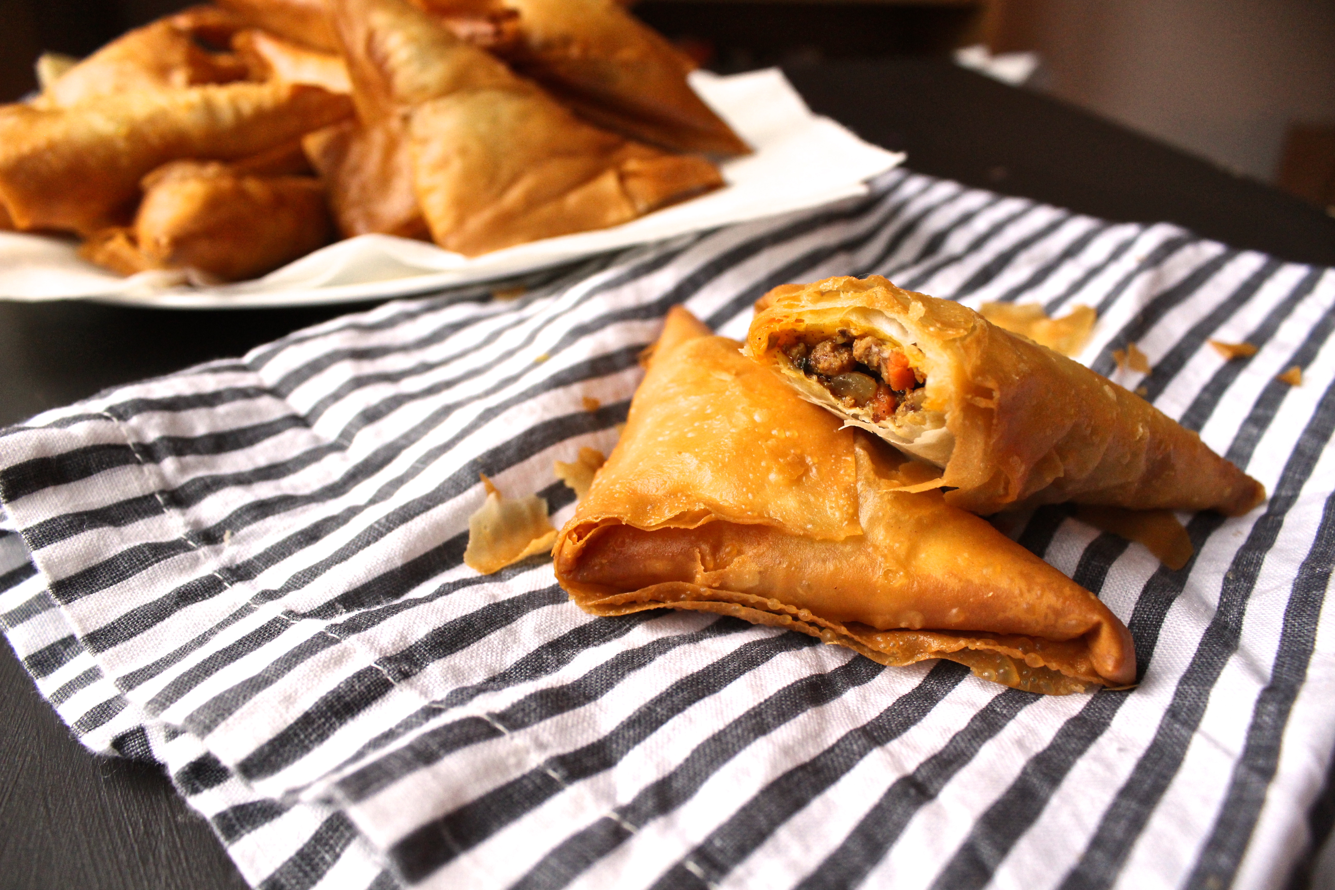 Samboosa, samosa. Tomato, tomahto. Either way - savory pastry stuffed with meaty goodness. A fellow homeschooling mom made this for a multicultural fair we had a few months back and it was so good I just had to recreate it. It is a traditional Omani recipe: ground beef infused with deep tomato flavor, spices, herbs and vegetables, enrobed in crispy fried pastry dough. Better than any of the samosas you’d find in Jackson Heights or any other South Asian enclave.