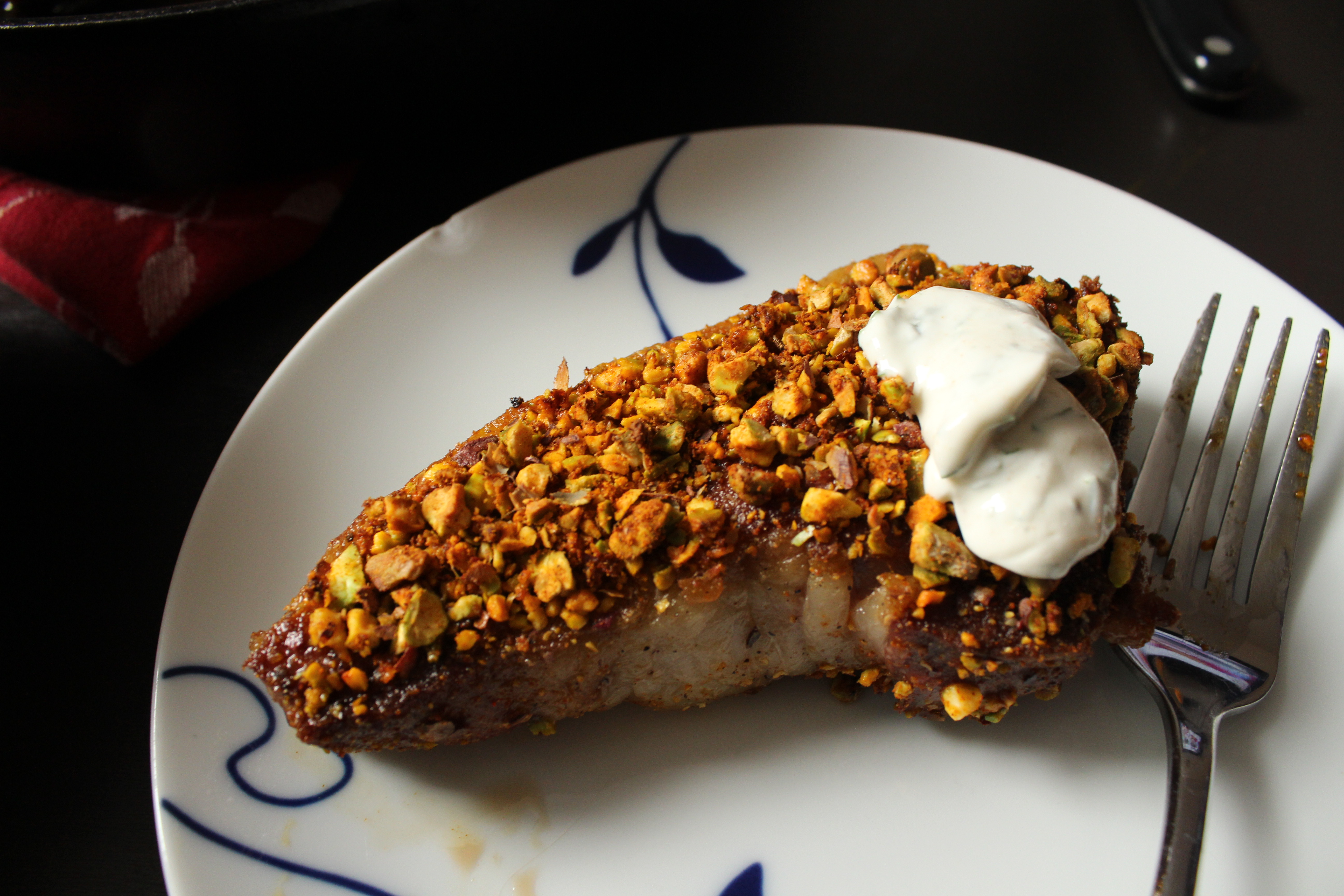 Lamb Chops with Spiced Pistachios and Yogurt Dipping Sauce