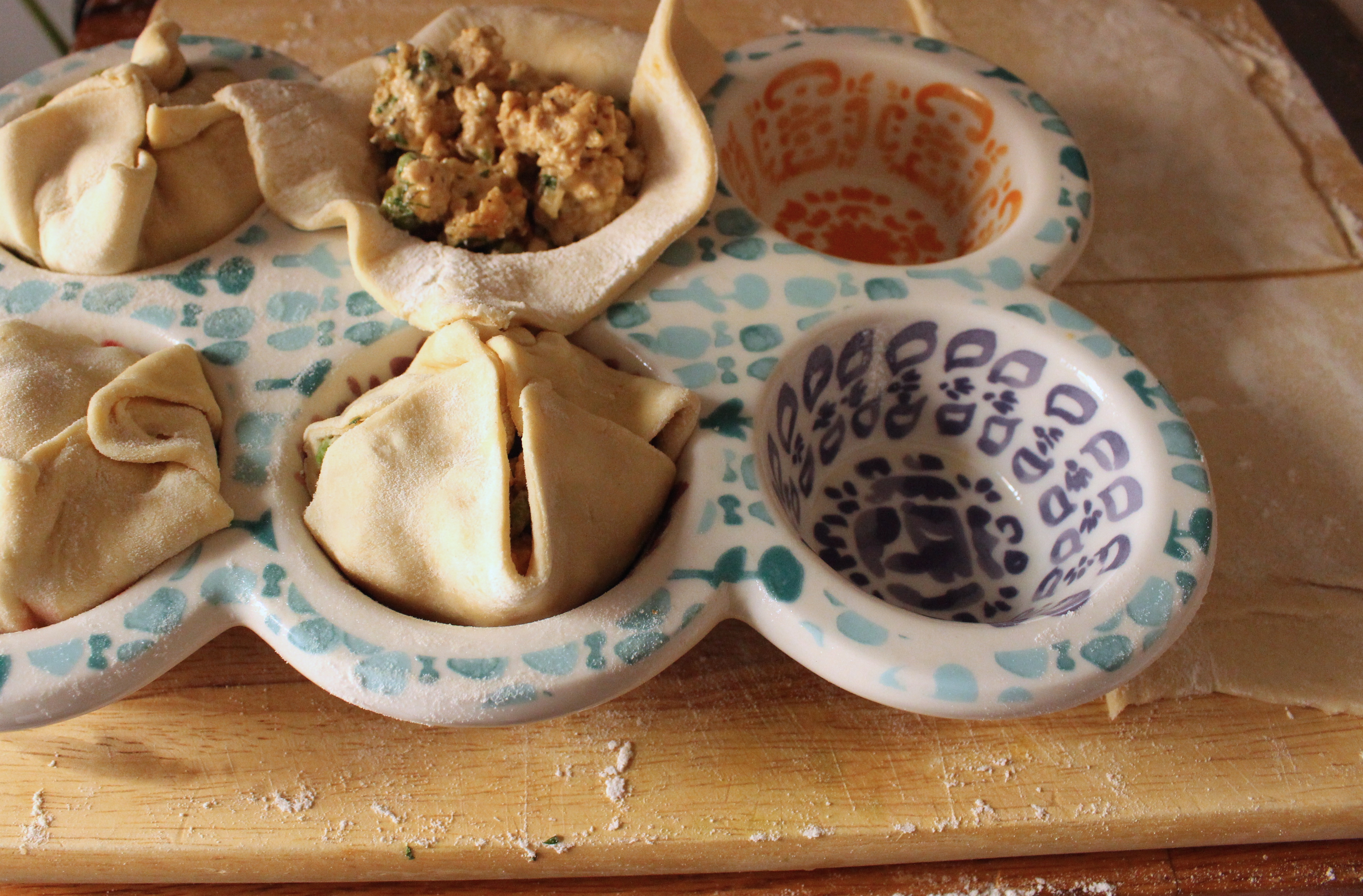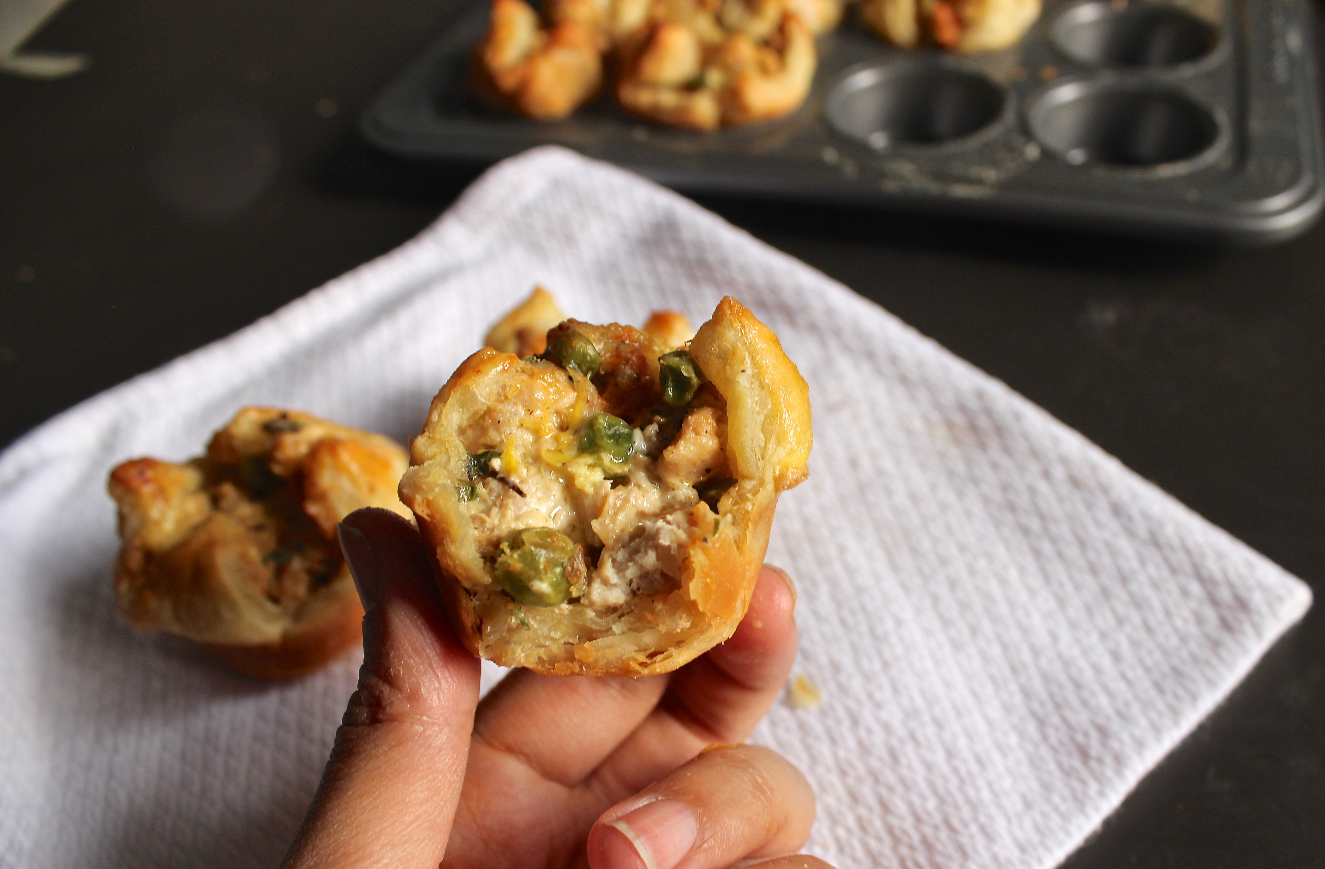 I took a shortcut with these little guys since I had some puff pastry sheets in the freezer and 0.0000018394 minutes these days for anything. I didn’t even make a proper roux for the filling. I simply sauteed the awesome Honest Chops ground turkey with onions, carrots and garlic. Added some dried thyme, salt and pepper. Then vegetable stock for moisture and half a package of cream cheese for creaminess. At the end, some frozen peas and chopped parsley for color and pizazz.