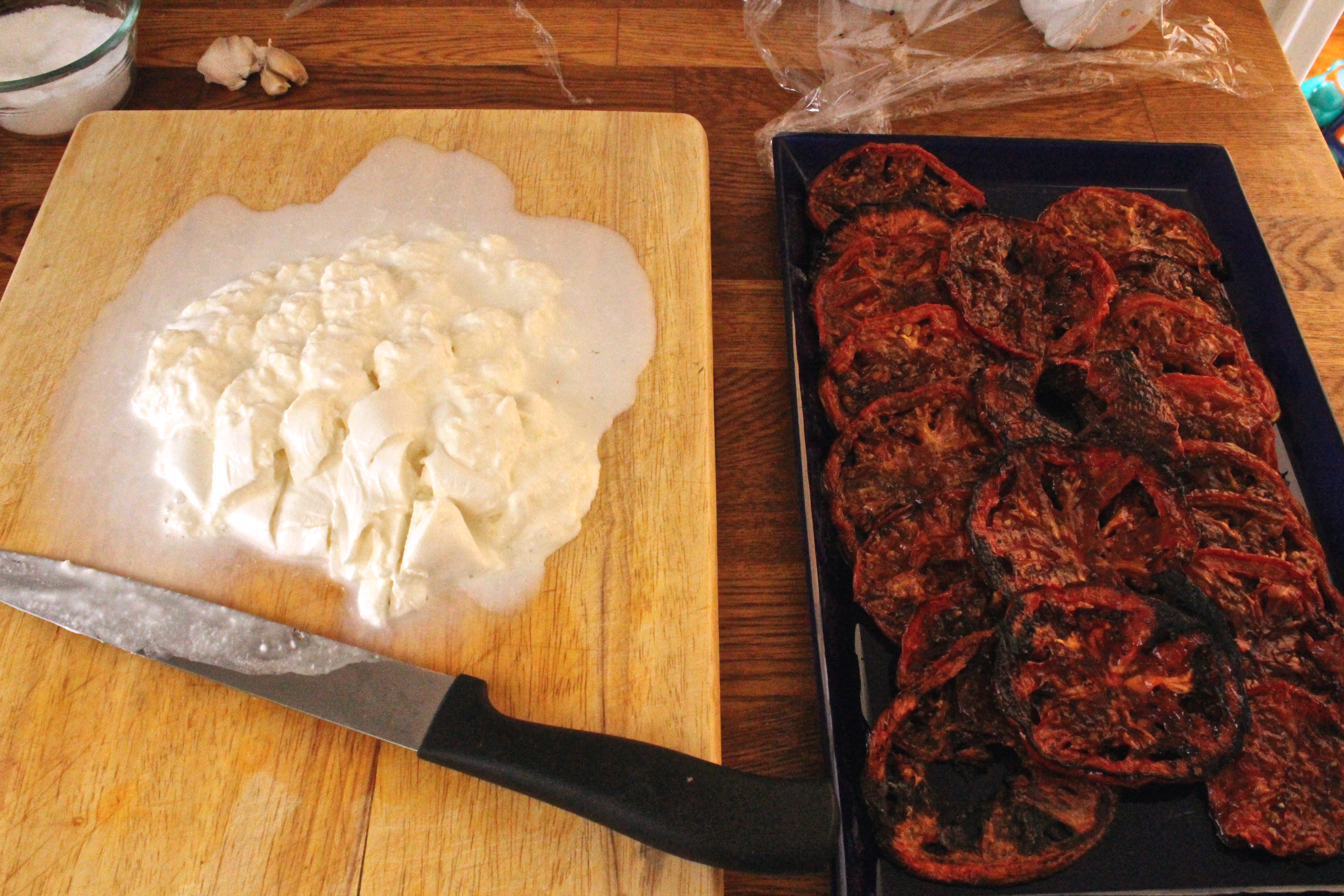 - 3-4 beefsteak tomatoes, depending on the size (I used 3 in the pictures above)