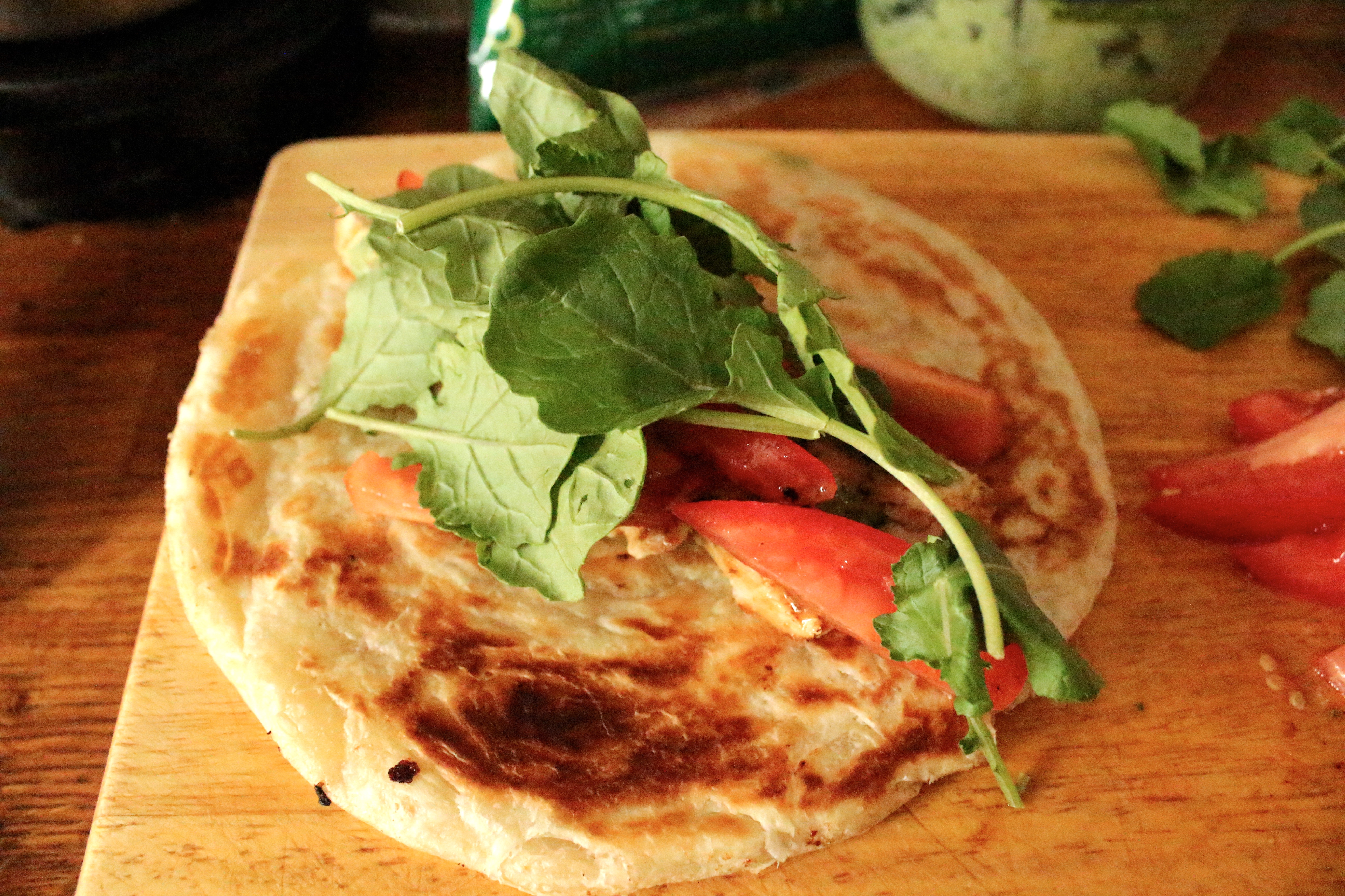 So, over the years, I’ve given myself a break. Not all their fruits and veggies are organic anymore. Sometimes they have nutella toast for dinner. And lollipops or ice cream in the evening? One heck of a reward for cleaning up their toys!�Not to say I’ve thrown all caution to the wind. I snuck some baby kale leaves into my daughter’s wrap this morning. Usually I make her sandwiches with soft whole wheat bread. Pictured below is Malaysian style paratha which, if you were with me during my semester in Rome, you know it is crazy good. It’s a flaky flatbread that makes anything taste good (not that this chicken needs any help!!).�