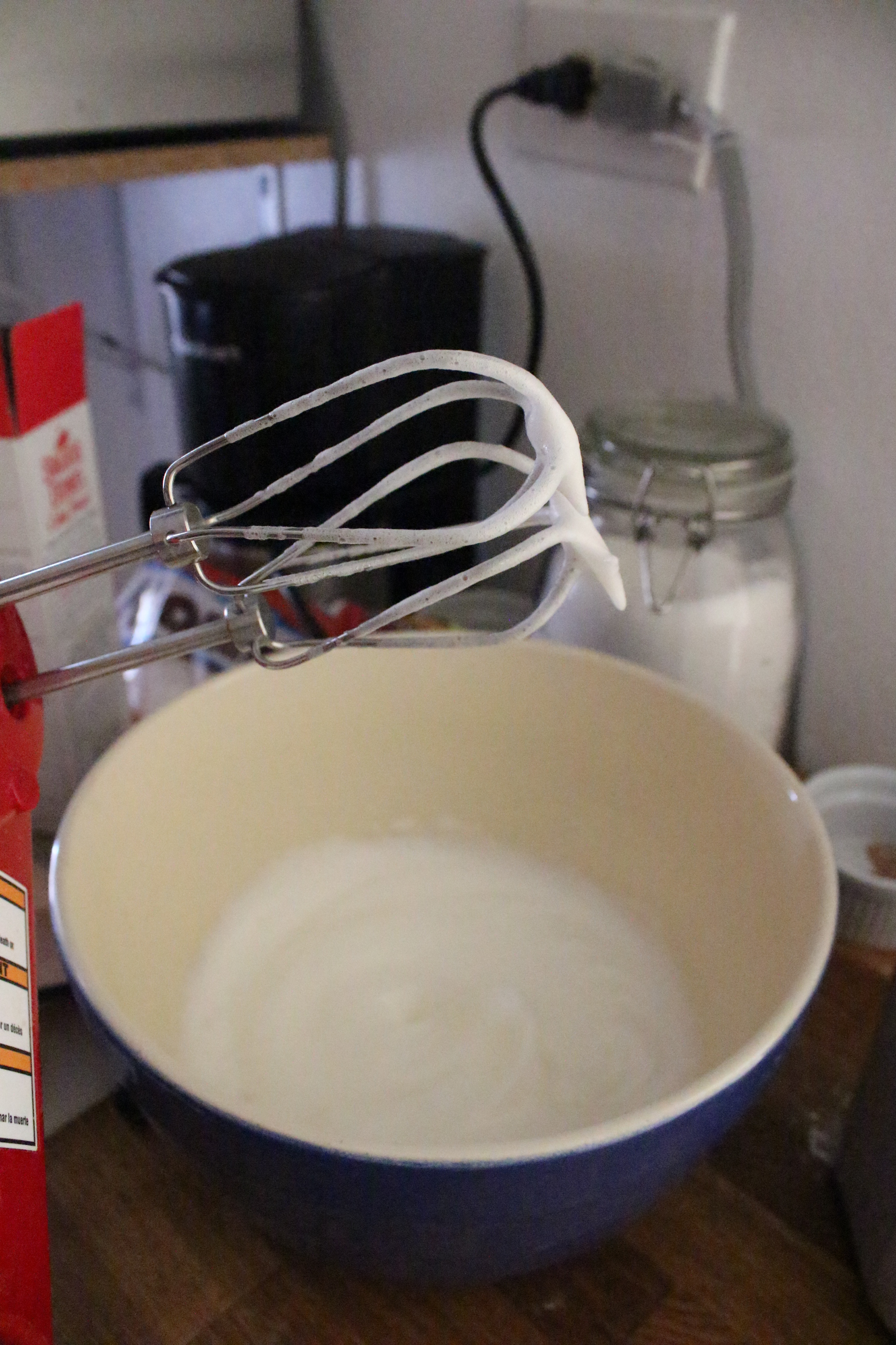 - In a large bowl, beat egg whites with cream of tartar with a handheld electric mixer starting at low speed and increasing to high speed. Beat until peaks are stiff, 5 to 7�minutes. Add 1/4 of the egg whites to the batter to loosen it up. Add remaining egg whites by gently folding with a rubber spatula, cutting down the middle of the batter, then turning the bowl 1/4 of the way and bringing the spatula up and over. Repeat until you can just barely see the streaks of egg white.