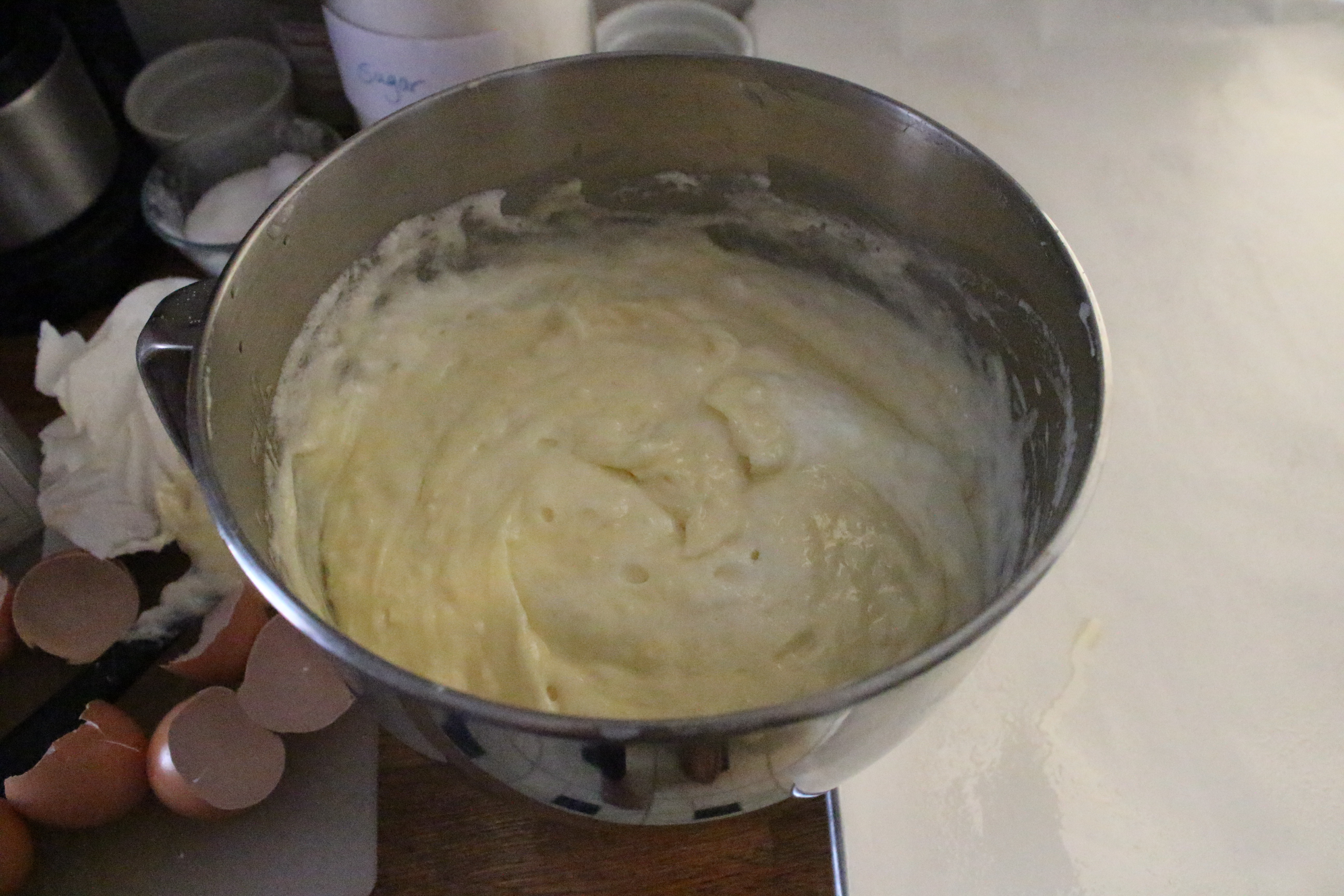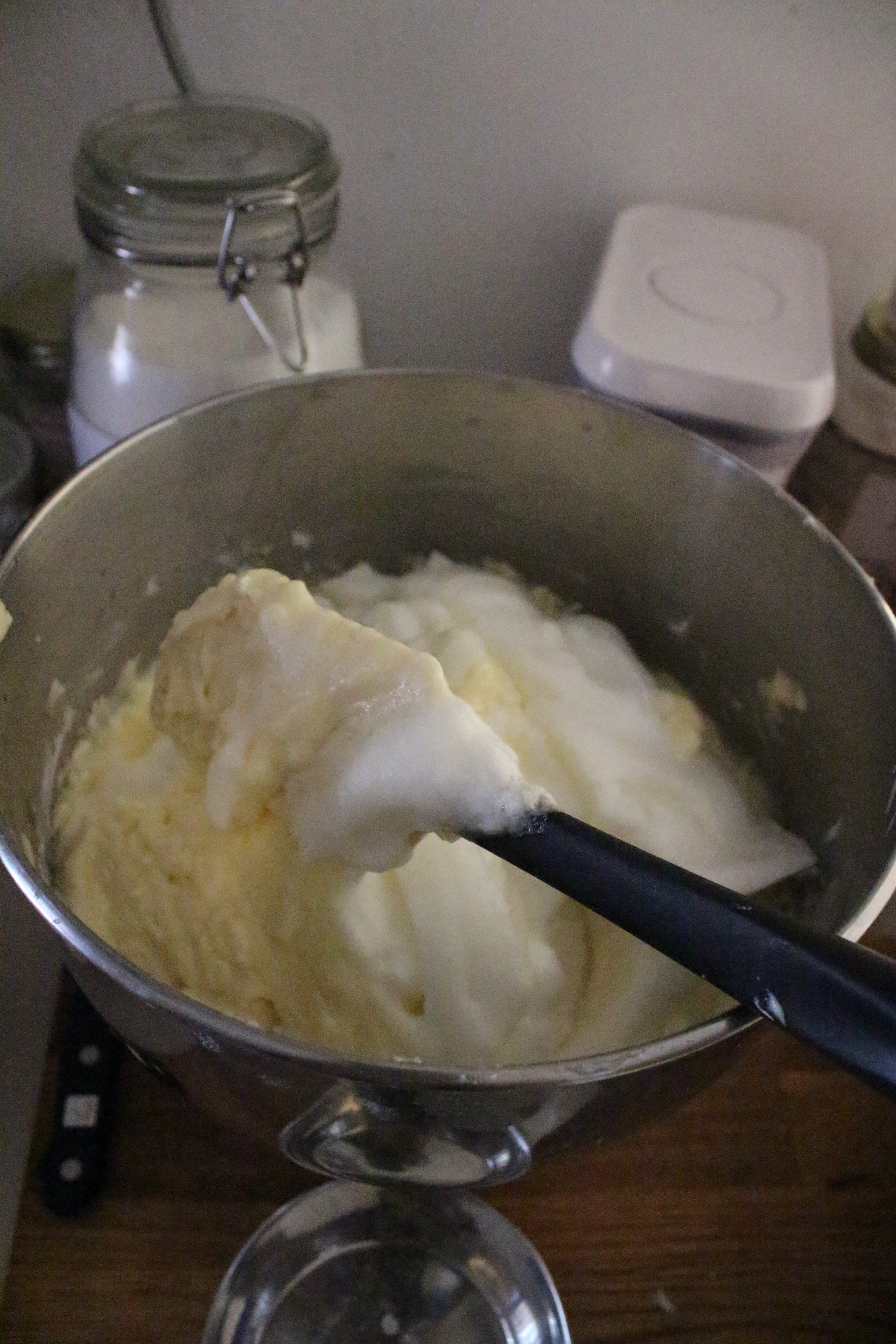 - Beat butter at low speed, gradually increasing to medium until light and aerated, 1 1/2 to 2 minutes. Gradually add 1 1/2 cups of sugar. Beat until light and fluffy - about another minute. Decrease speed to low and add oil. Gradually add the remaining sugar so as not to deflate the butter. Add the six egg yolks, one at a time, scraping down the bowl halfway through. Add the extracts and beat until combined. Stop mixer.